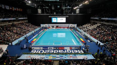 Zahvaljujući svojoj tehnologiji, referencama, kvalitetu i rekordnom vremenu montaže, komapnija MYRTHA POOLS postavila je 2 privremena bazena unutar Sinan Erdem Arena, koji će nakon takmičenja biti premešteni n